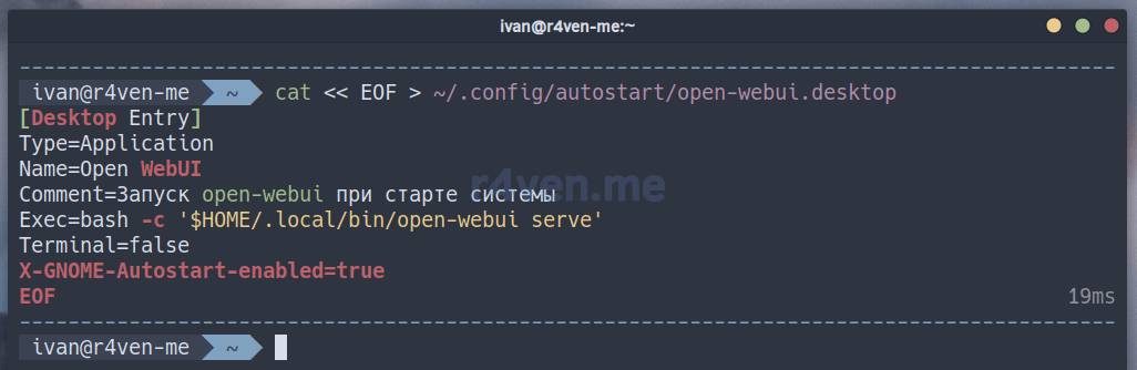 Чтобы open-webui стартовал автоматически при входе в систему создадим специальный .desktop файл в директории автозапуска: