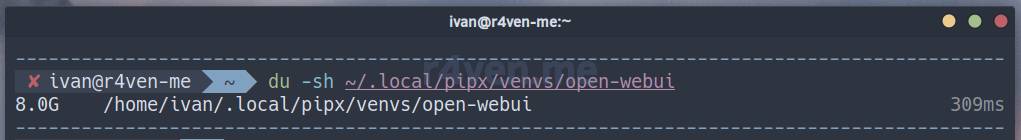 pipxустановитopen-webuiв локальную директорию пользователя~/.local/pipx/venvs/open-webuiи сделает символьную ссылку в~/.local/bin/open-webui.💡Альтернативные способы установки смотрите тут. Удалить