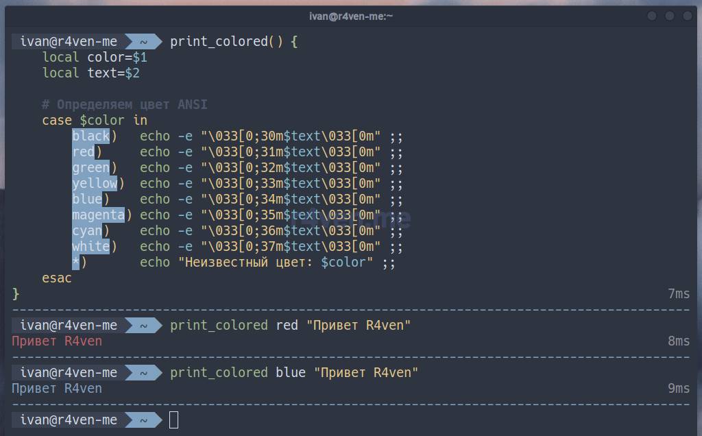 Напиши bash функцию, которая принимает цвет как 1-й аргумент, а 2-м переданный текст и выводит на экран текст в этом цвете.