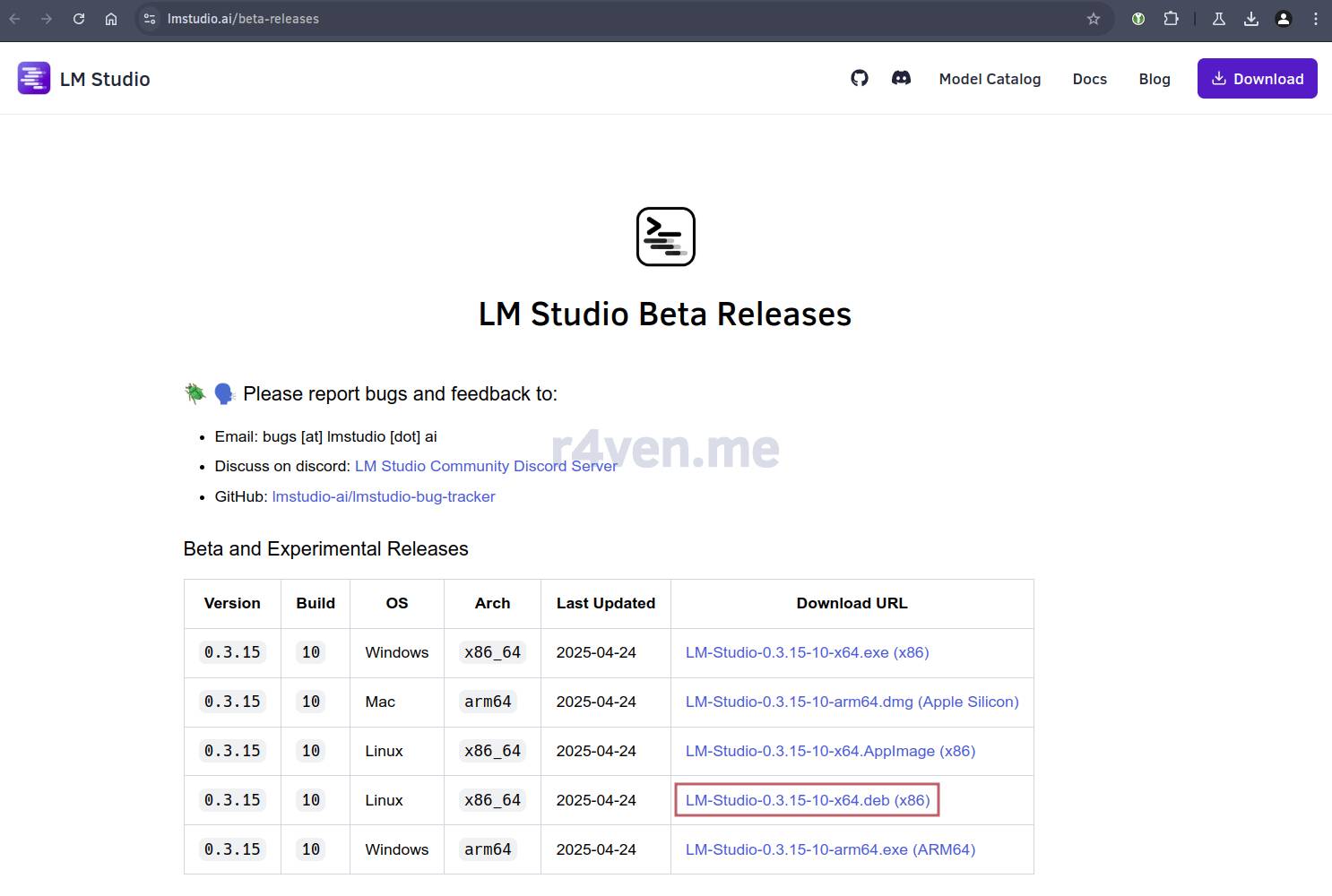 Для deb based систем разработчики LM Studio подготовили установочный пакет. Чтобы установить приложение переходим на страницу загрузки и скачиваем его: