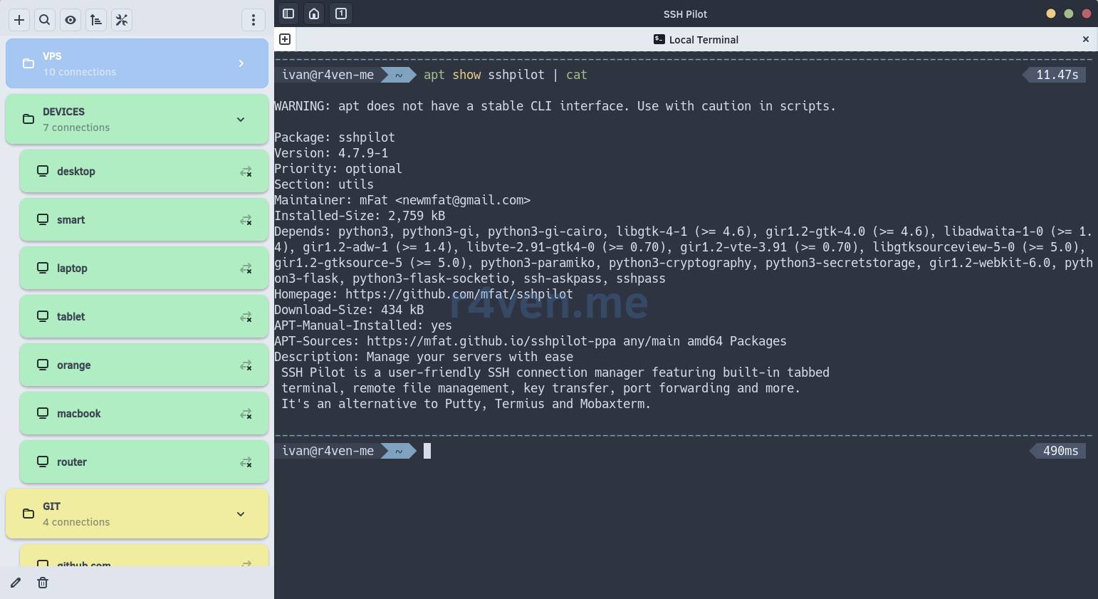 sudo apt update && sudo apt install sshpilotСкачать SSH Pilot можно также со страницы релизов на GitHub или с официального сайта в соответствующем разделе.