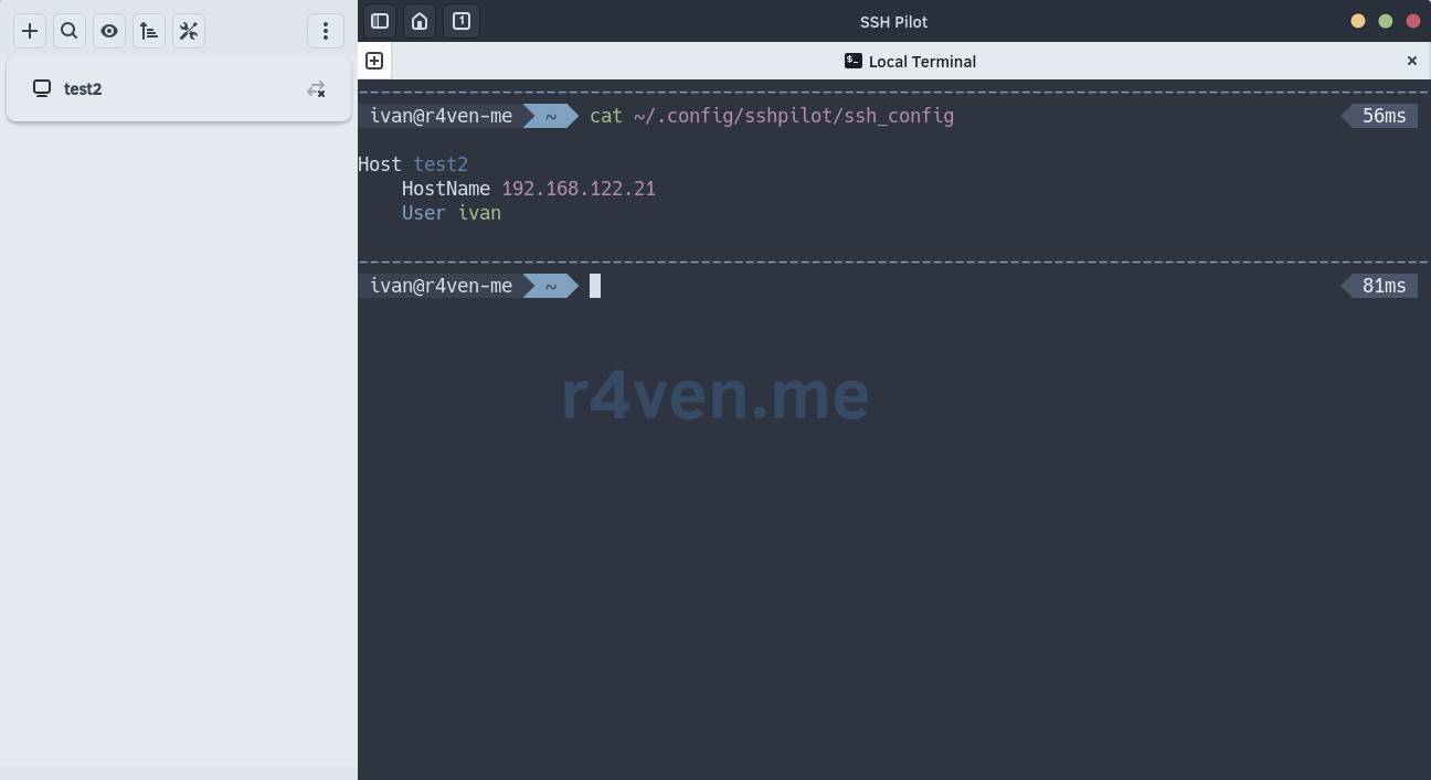 В таком случае формат конфига аналогичный стандартному, только располагается он теперь по пути: ~/.config/sshpilot/ssh_config: