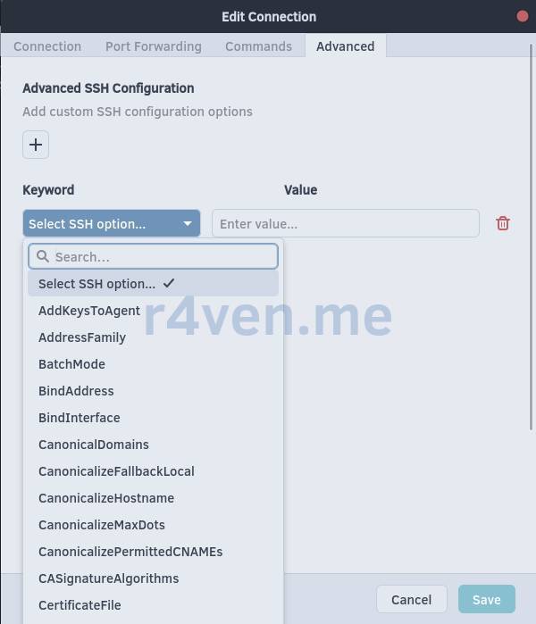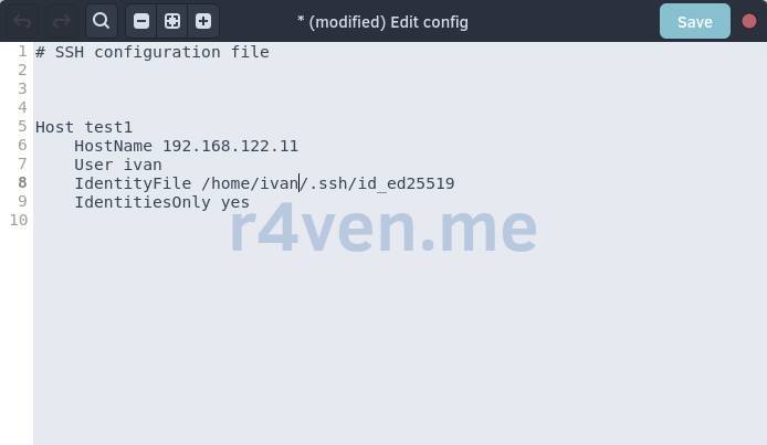 Чуть подробнее расскажу про ключевую для меня “фичу” программы: интеграцию со стандартным конфигурационным файлом клиента SSH ~/.ssh/config.