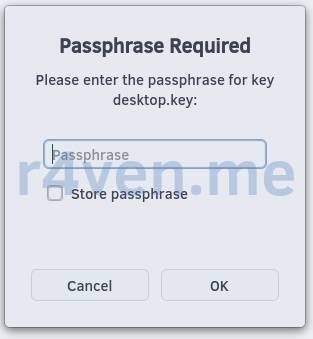 В случае использования ключа, защищённого паролем, всплывёт такое окно: