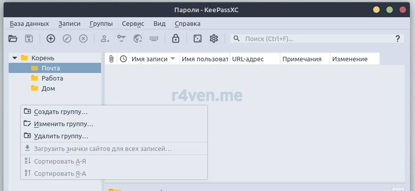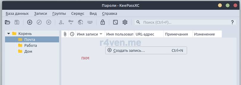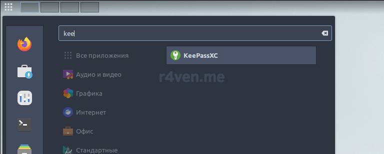 После установки открываем главное меню, ищем наш KeePassXC и запускаем: