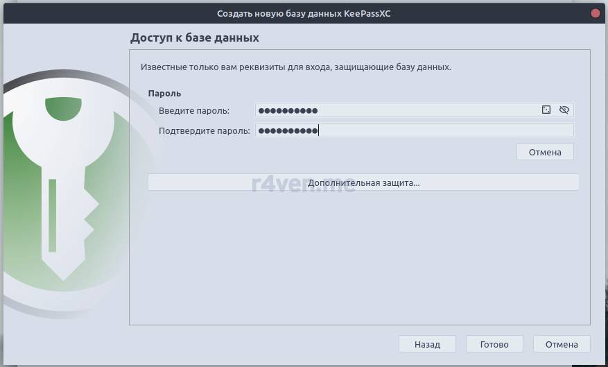 - Задаём мастер пароль (желательно надёжный);