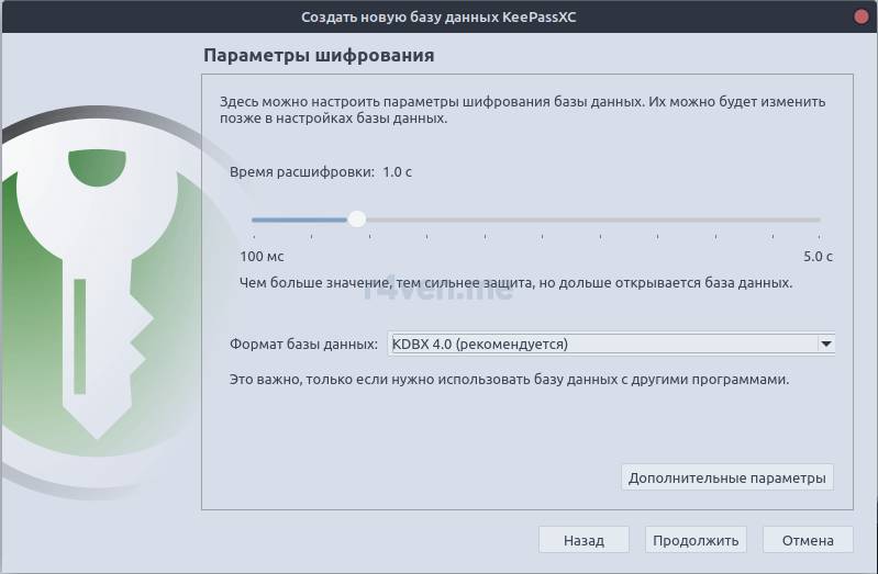 Обязательно запомните свой мастер пароль! Или запишите его где-нибудь на бумаге и спрячьте в надёжном месте. Потому что, если вы его забудете или потеряете, то восстановить содержимое вашей БД вы никак не сможете! В этом суть шифрования 🙂