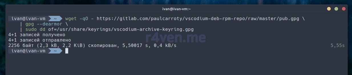 wget -qO - https://gitlab.com/paulcarroty/vscodium-deb-rpm-repo/raw/master/pub.gpg \