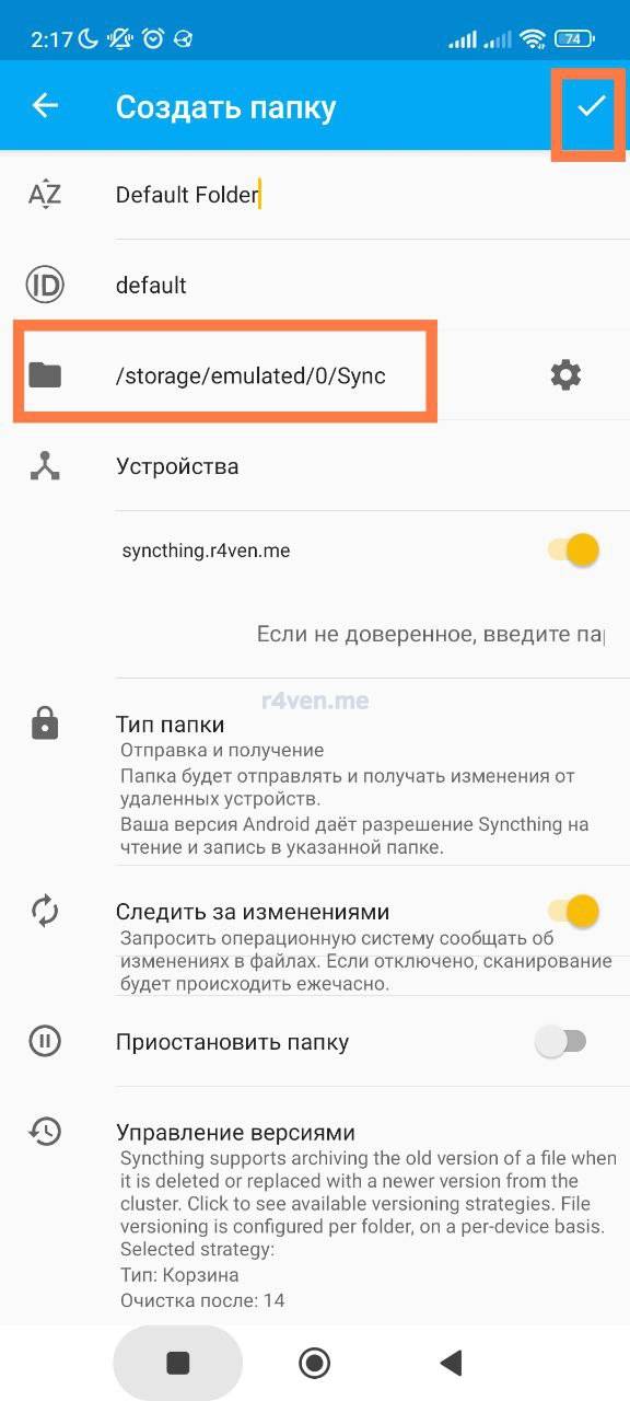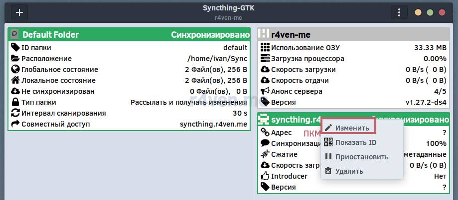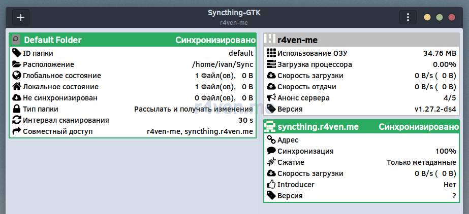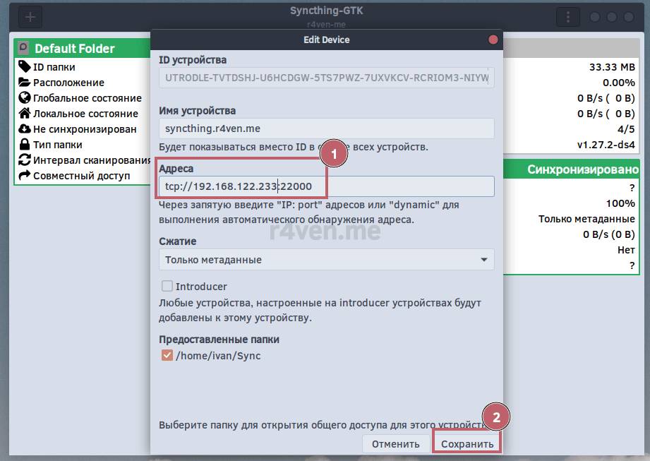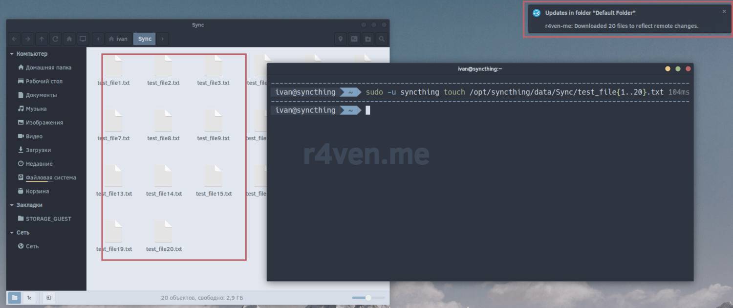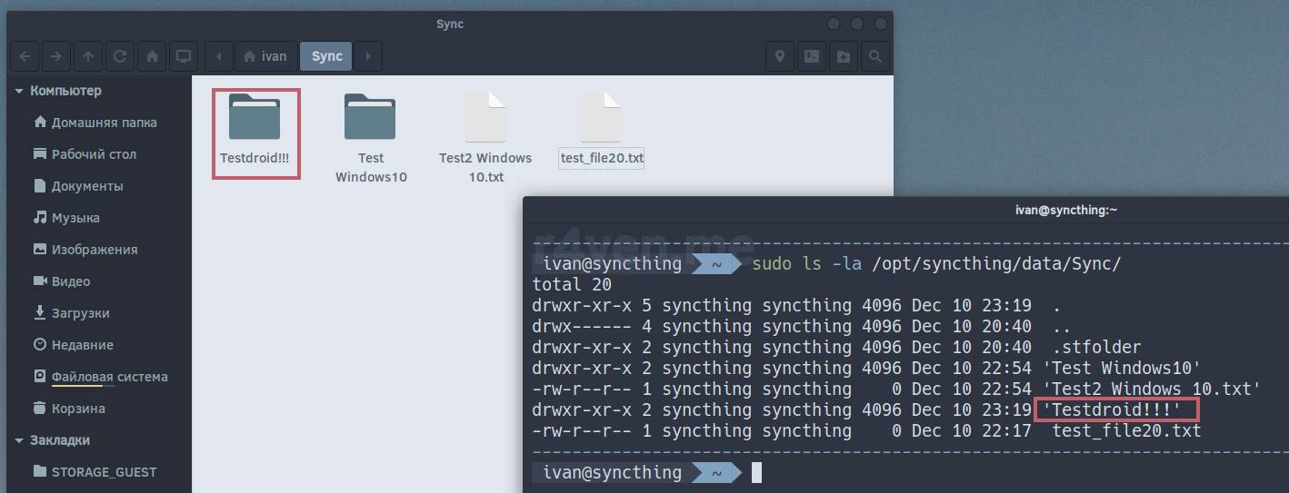 /opt/syncthing/data/Sync— на сервере;/home/$USER/Sync— на клиенте Linux (у меня это/home/ivan/Sync)