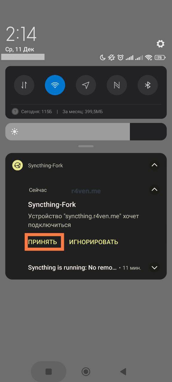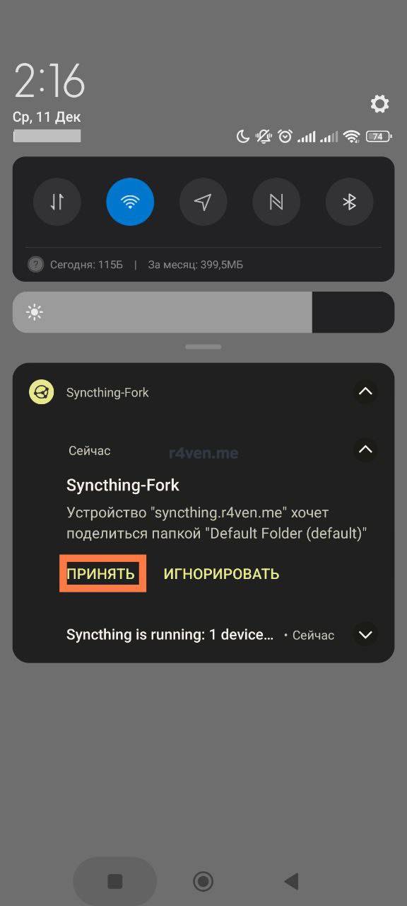 - Через некоторое время на клиенте Android придет два запроса в шторке уведомлений: