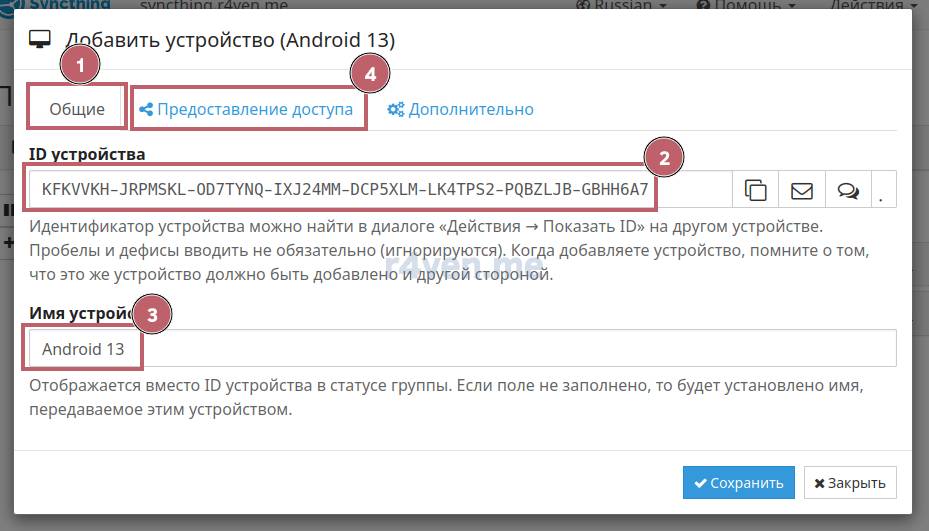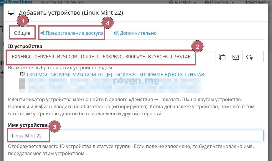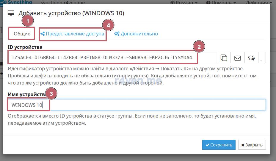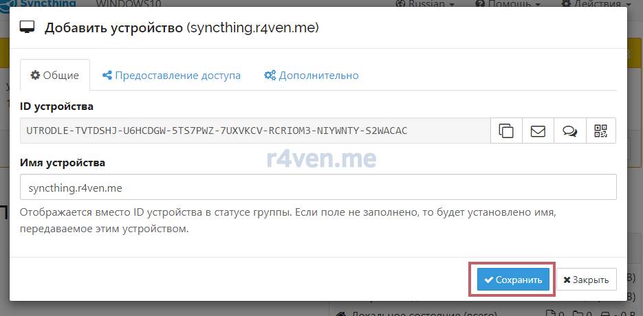 Вставляем ID на вкладке «Общее» и при необходимости указываем имя устройства: