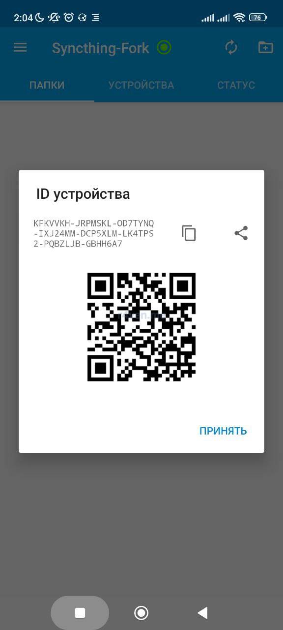 Для ОС Andorid существует одноименное приложение Syncthing, но его развитие прекратилось в этом году😔 и разрабы рекомендуют использовать его расширенный форк: Syncthing-Fork. Эти приложения можно с легкостью найти в Google play и F-droid. Ну или на странице релизов GitHub.