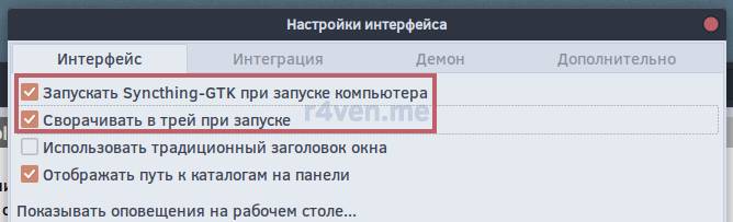 Сразу перейдем в настройки и включим автозапуск🚀 Syncthing при запуске графического сеанса пользователя: