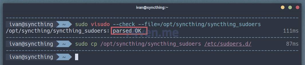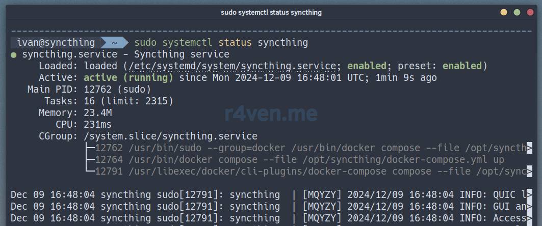 syncthing ALL = (:docker) NOPASSWD: SYNCОбратите внимание, что сервис