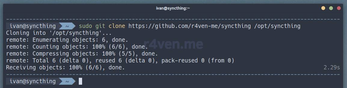 sudo git clone https://github.com/r4ven-me/syncthing /opt/syncthing