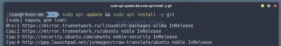 Если Linux сервер готов, подключаемся к нему, например, по SSH🔐 и первым делом устанавливаем систему контроля версий git:
