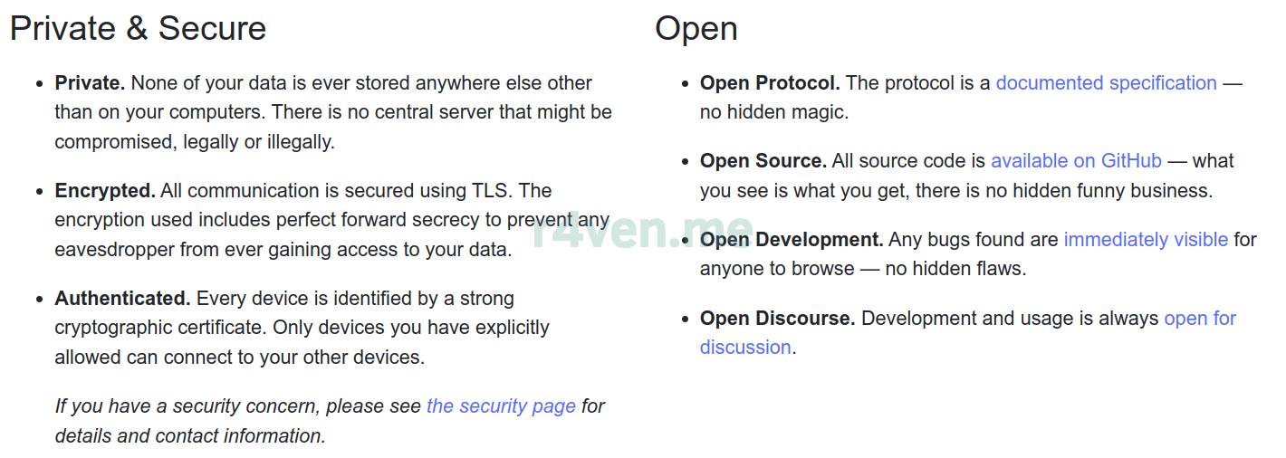 Как уже было сказано, Syncthing — это ПО для синхронизации файлов между различными устройствами. Вот основные тезисы от разработчиков: