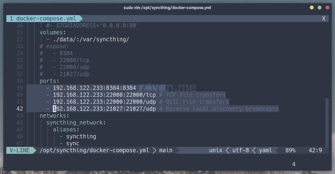 docker-compose.yml - файл описания сервиса syncthing, запускаемого в docker контейнере