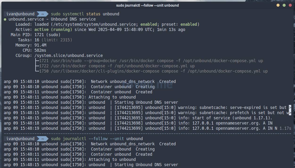 sudo docker logs --follow unbound ⚠️Для выхода из режима просмотра логов нажмите
