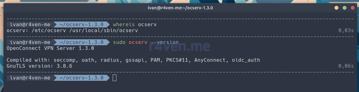 Обратите внимание, что ocserv по умолчанию устанавливается в /usr/local/sbin.