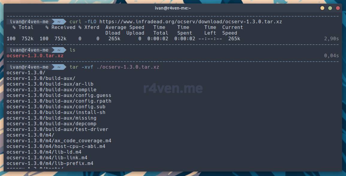 После установки всех нужных пакетов, скачиваем архив с исходниками ocserv с помощью утилиты curl. После чего распаковываем архив с помощью архиватора tar: