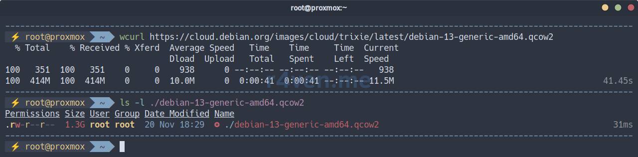 wcurl https://cloud.debian.org/images/cloud/trixie/latest/debian-13-generic-amd64.qcow2
