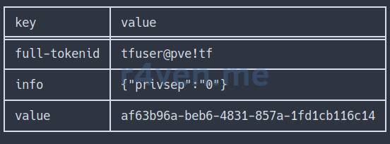 # Создаем токен API для пользователя 'tfuser@pve' с именем 'tf'