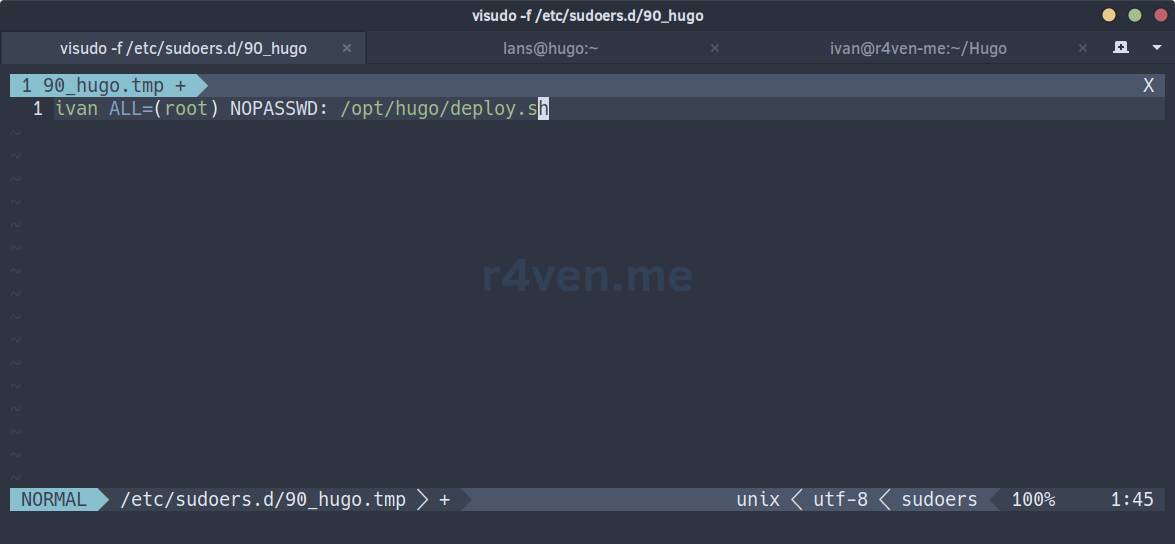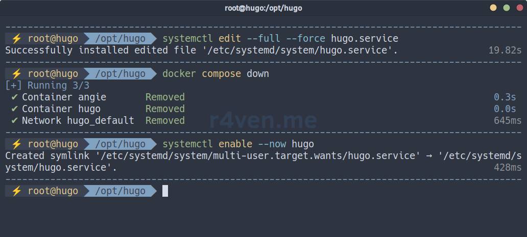 ☝️Следующие действия выполняются на удалённом сервере hugo.r4ven.me от имени root пользователя.