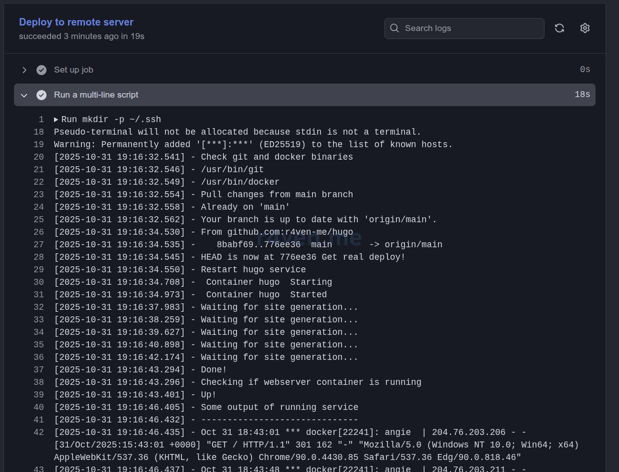 Фух..😔 Это было длительное и увлекательное путешествие! В итоге мы получили быстрый и безопасный статический сайт на Hugo, а главное - настроили комфортный процесс публикации: пишем заметки в Obsidian, нажимаем “одну кнопку”, и через несколько минут контент автоматически обновляется на сервере. Это, как сейчас говорится, и есть современный подход к ведению блога в формате “Docs as code” - эффективно, автоматизированно и приятно😎.