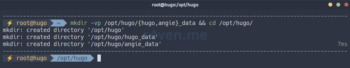 mkdir -vp /opt/hugo/{hugo,angie}_data && cd /opt/hugo/